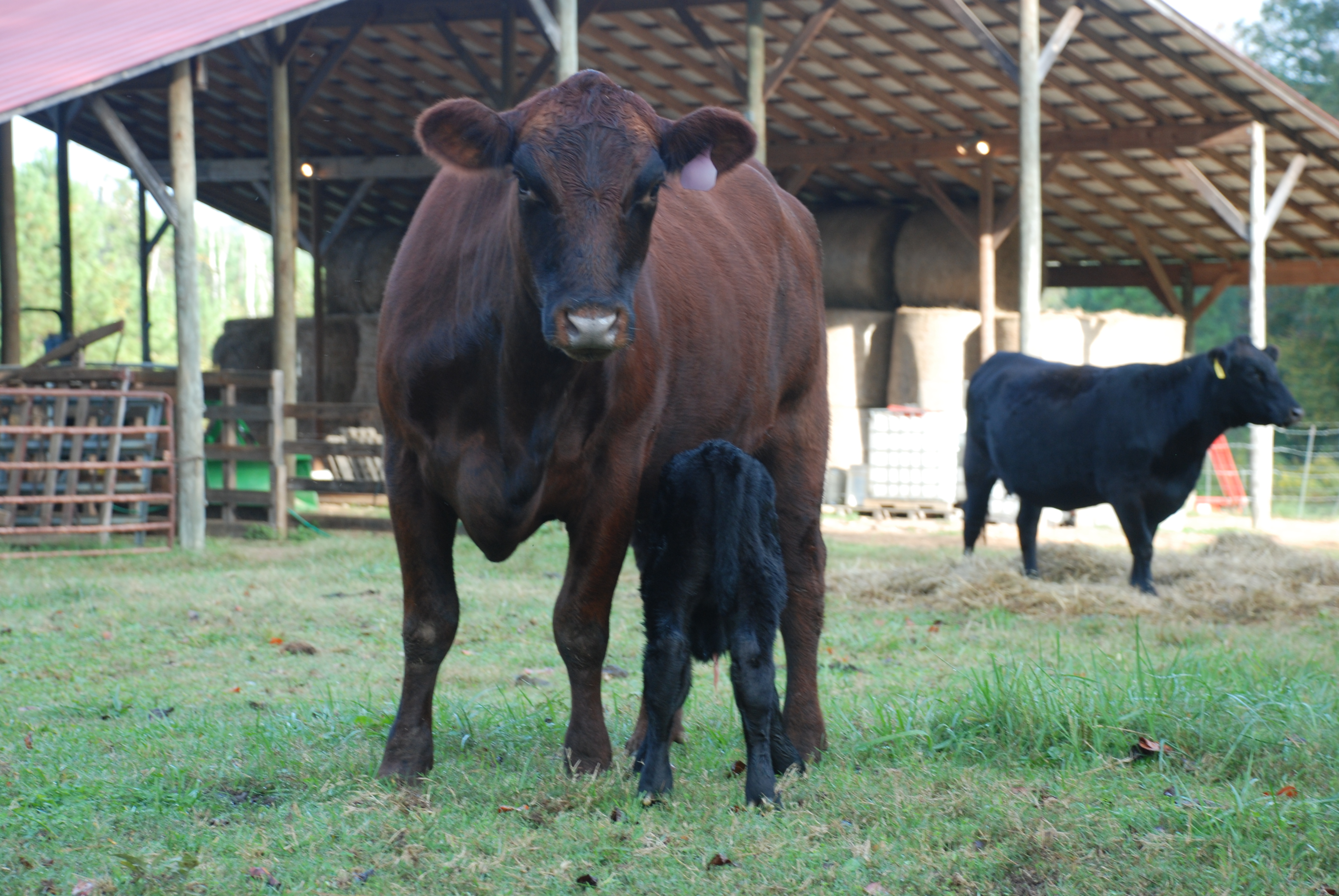 Our business is considered a Cow-Calf operation. We raise mamas and calves. The calves remain with their mamas on our farm until they have been weaned at 6-7 months old. At this point they are sold at market and live the remainder of their life off our farm. These calves grow to provide you, our customer, with delicious, lean beef. Each year we keep a group of female calves to raise and breed with the rest of our herd because we are proud of our genetics. Our commercial herd consists of primarily Angus and Simmental lineage.